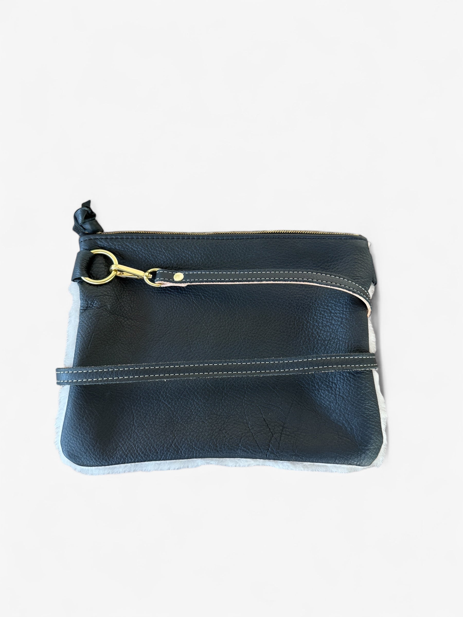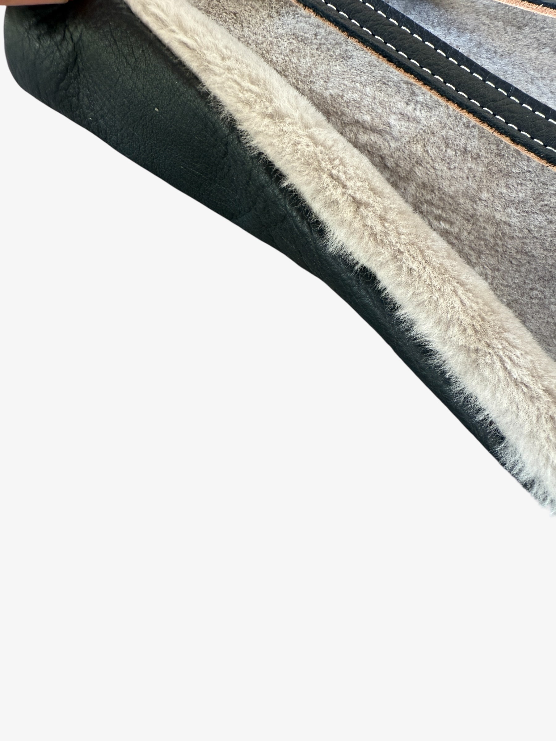 - Black Leather/Grey Sherpa